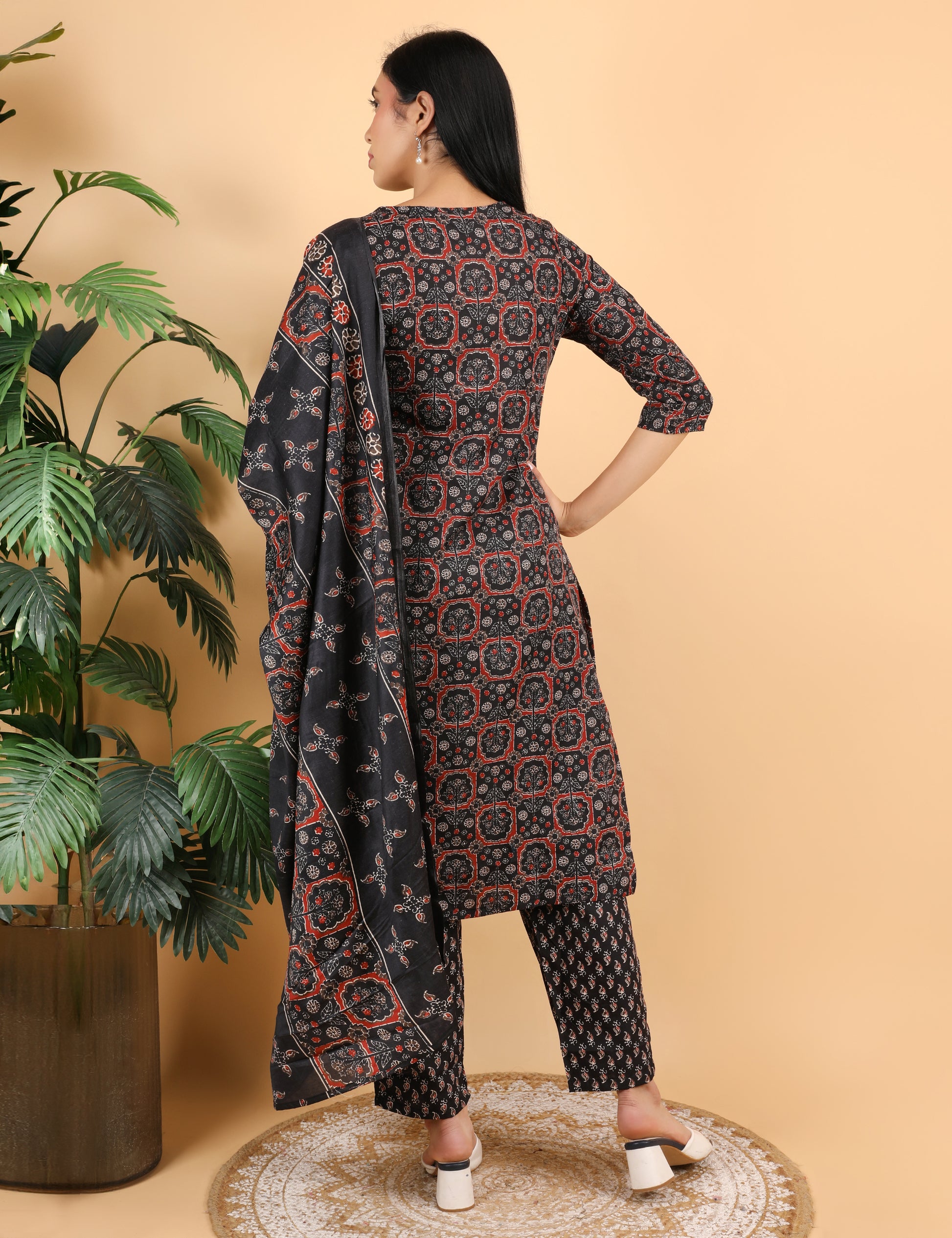 Classic black base with traditional block print