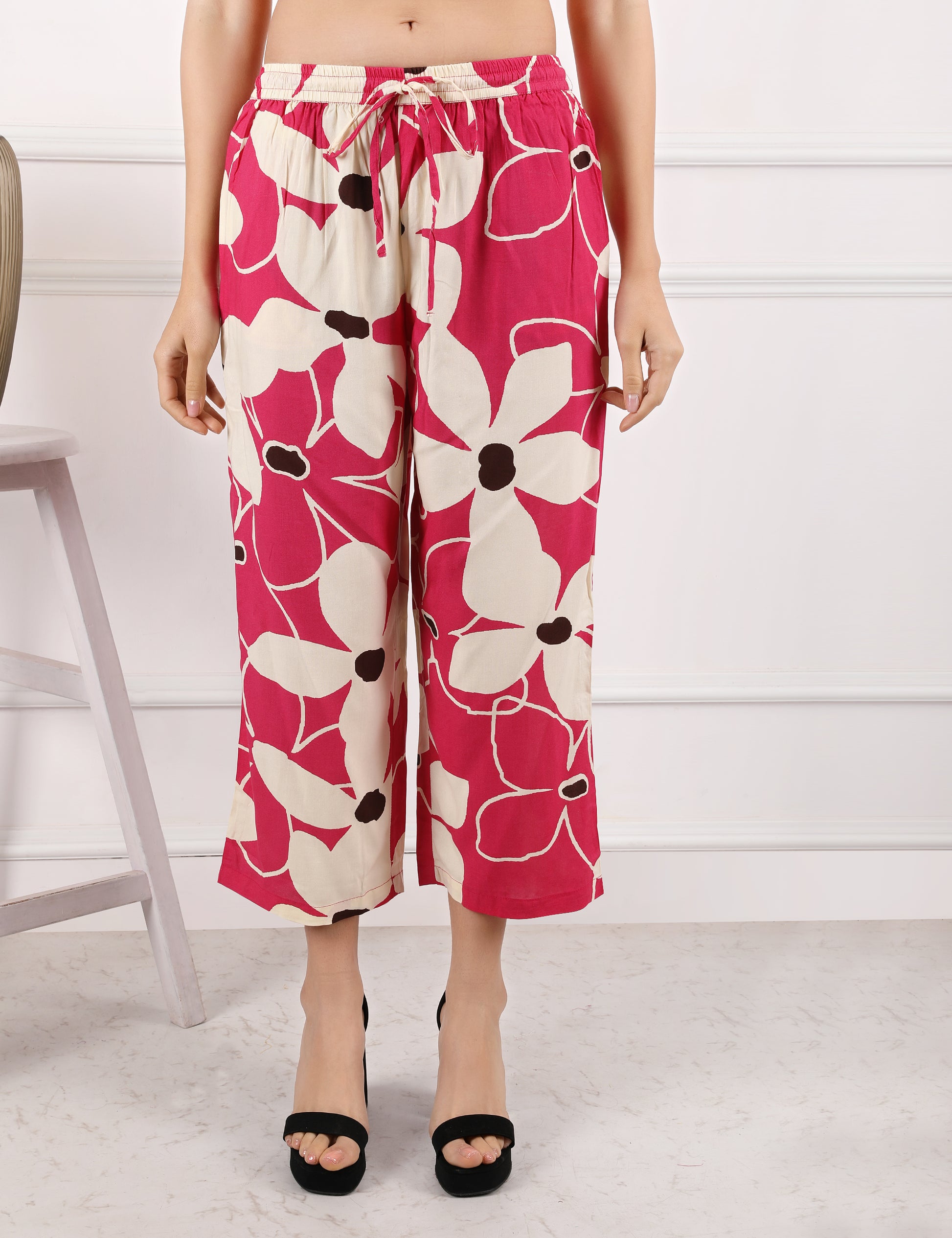 Step out in effortless style with this elegant cotton kurti set, crafted for comfort and modern everyday wear. Made from soft, breathable cotton fabric, this set features a classic rani pink base adorned with a subtle all-over bold white floral print, giving it a refined and timeless appeal.